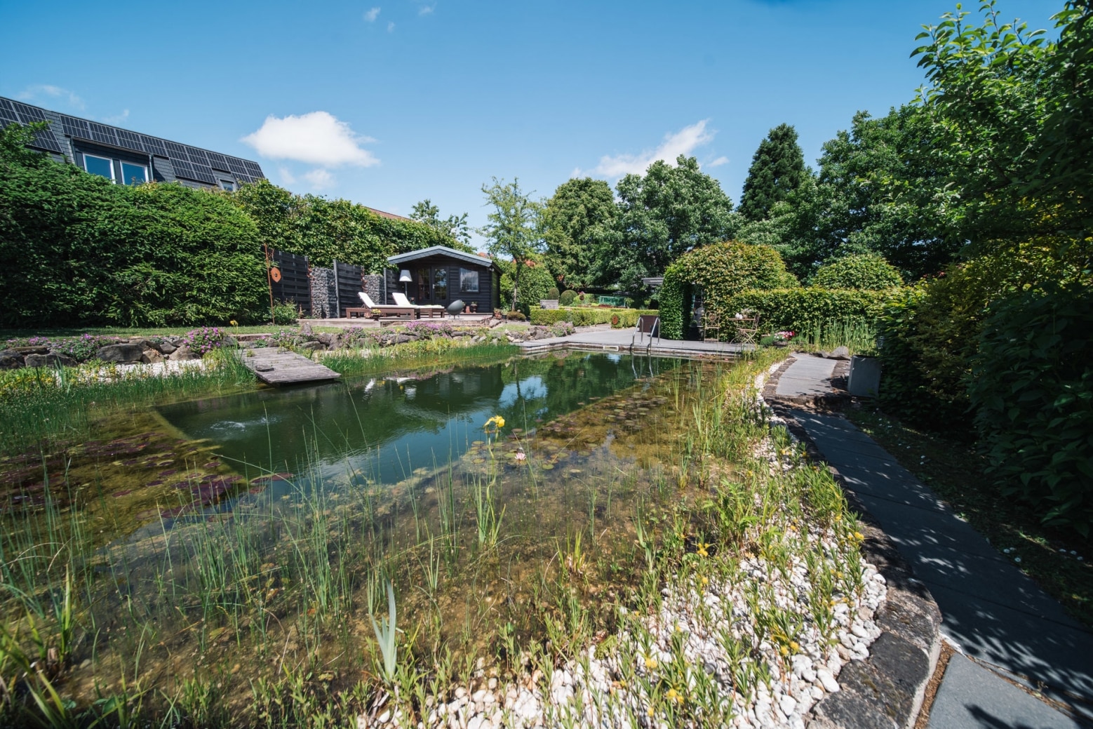 Naturschwimmteich mit Gartenhaus