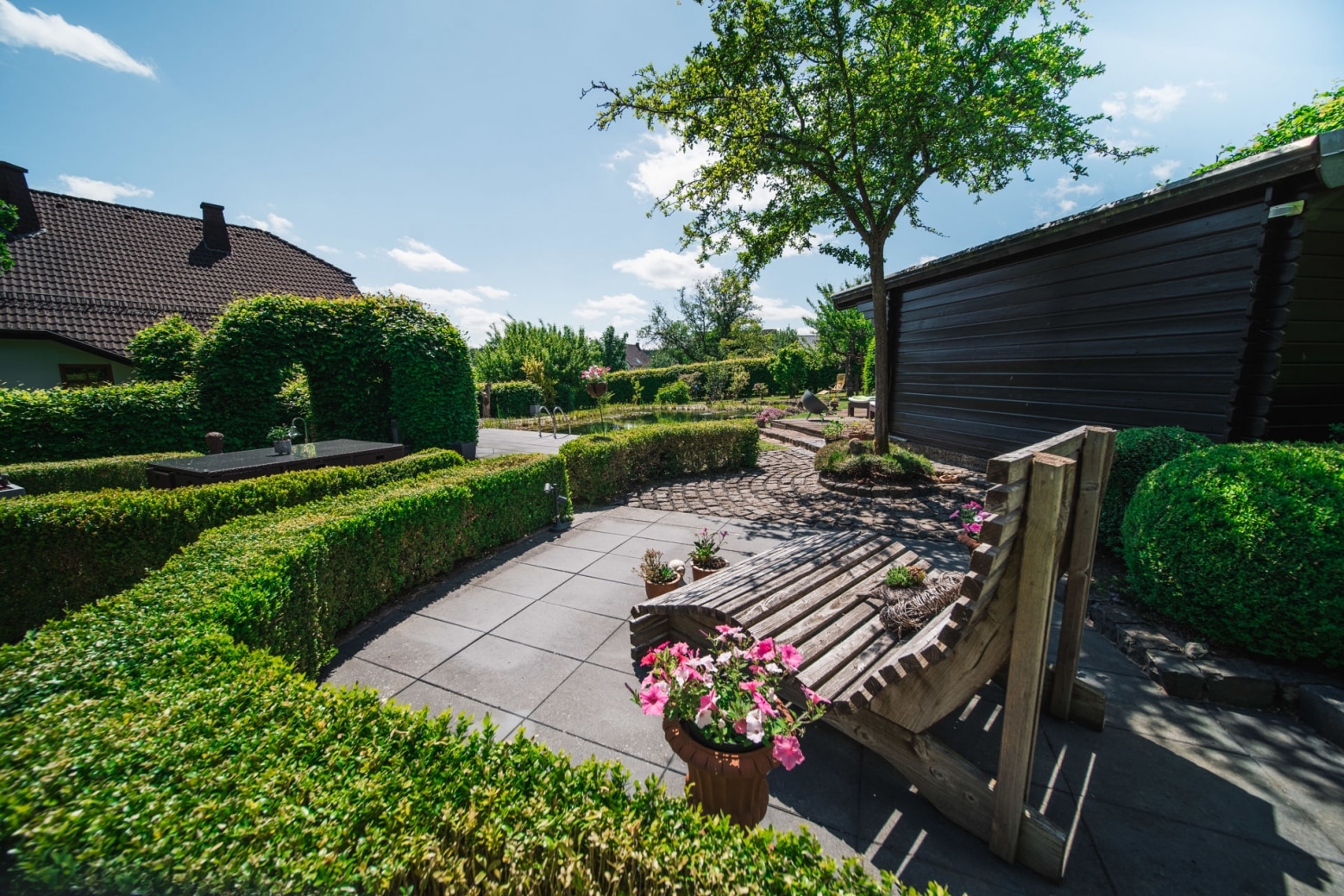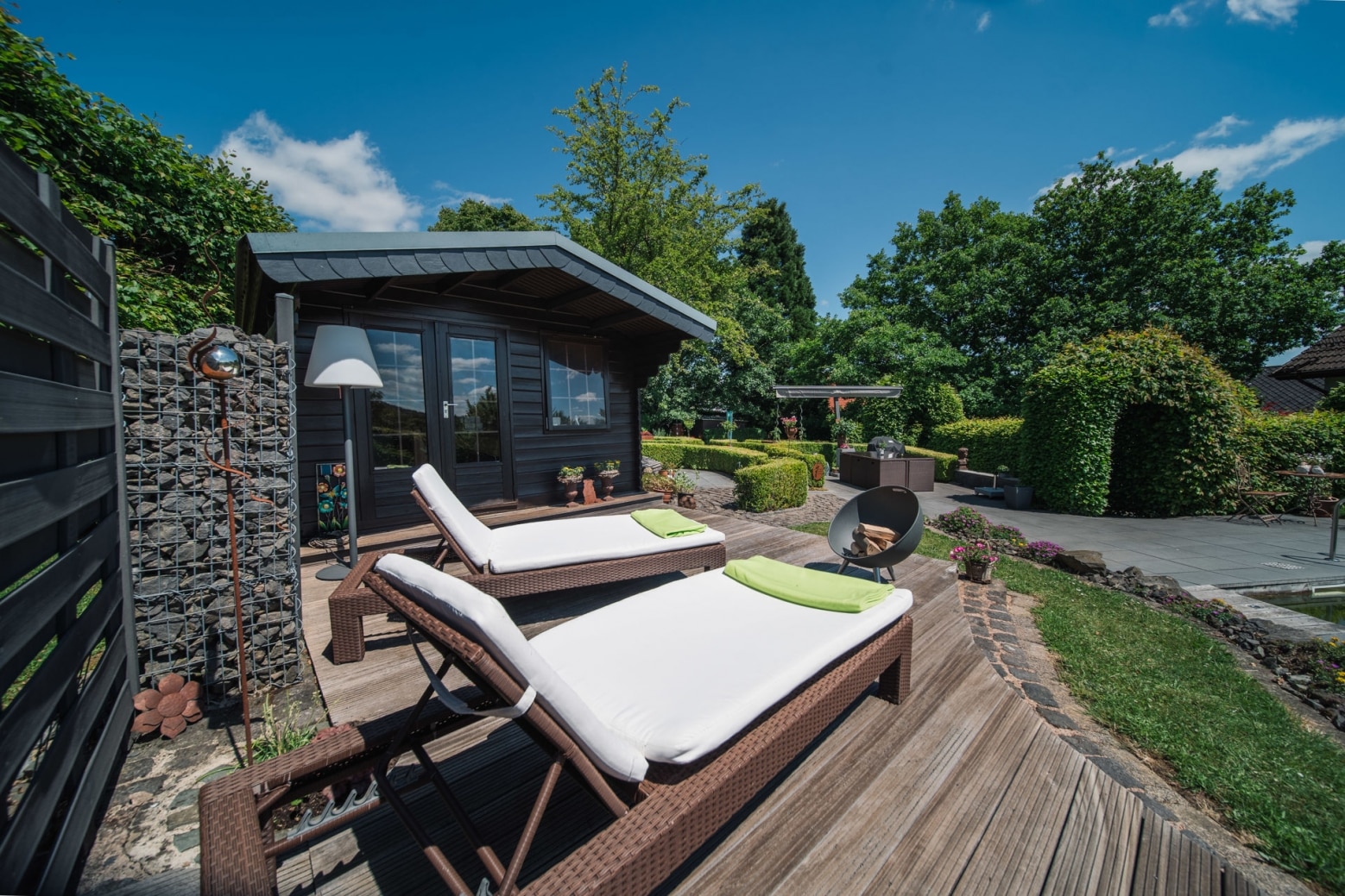Der Außenbereich wurde in 2007 und 2018 erneuert und modernisiert, hier befinden sich 2 weitere Geräteschuppen