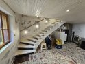 Im Erdgeschoss befindet sich ein großer offener Wohnbereich mit Badezimmer, Waschküche und separate Toilette, sowie eine Garage.
