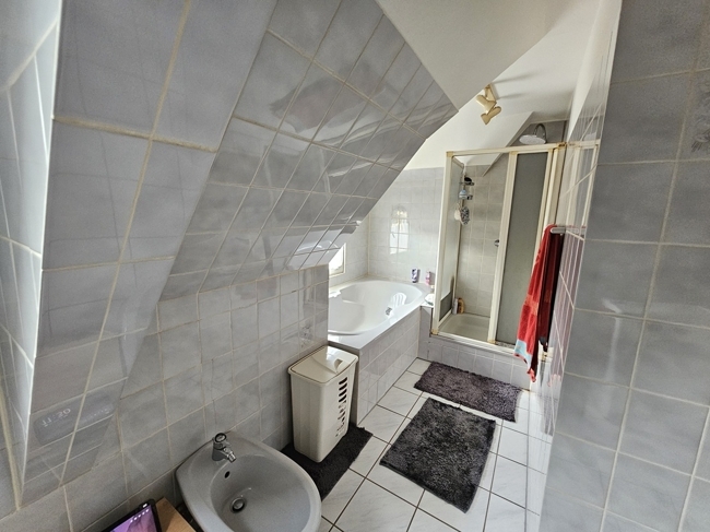 1938 erbautes Doppelhaus/ Zweifamilienhaus mit insgesamt 4 Etagen und 2 Wohnungen (eine Wohnung ist derzeit vermietet). 230m² Wohnfläche verteilt auf zwei Wohnungen mit jeweils ~115m² sowie ein Keller mit zusätzlicher Lagerfläche und separater Garage mit insgesamt 151 m² Nutzfläche. Das Haus wurde um 1990 kernsaniert und größtenteils erneuert.