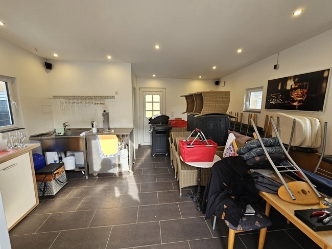 1584 m² großes Grundstück mit großer Terrasse und einem separatem Nebengebäude mit eigenem WC, dass als Garten-/ Partyraum oder Büro genutzt werden kann.