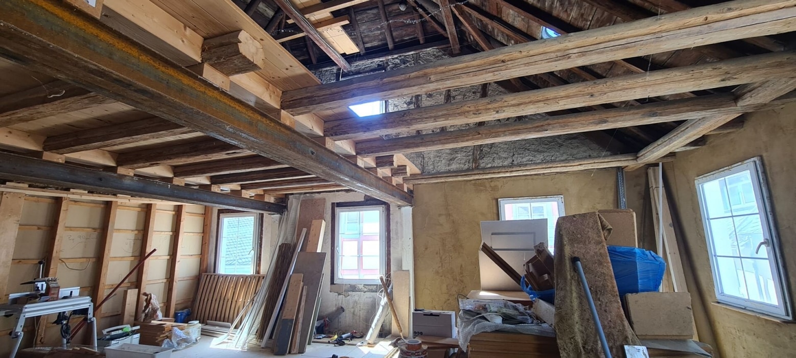 Dadurch kann die Immobilie ohne größeren zusätzlichen Aufwand direkt genutzt werden. Gleichzeitig bieten vorhandene Ausbaureserven - etwa ein begonnener Loftausbau im Dachgeschoss - zusätzlichen Gestaltungsmöglichkeiten und eine flexible weitere Entwicklung.